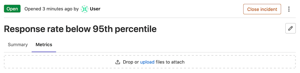 In many cases, incidents are associated to metrics. You can upload screenshots of metric charts in the Metrics tab: